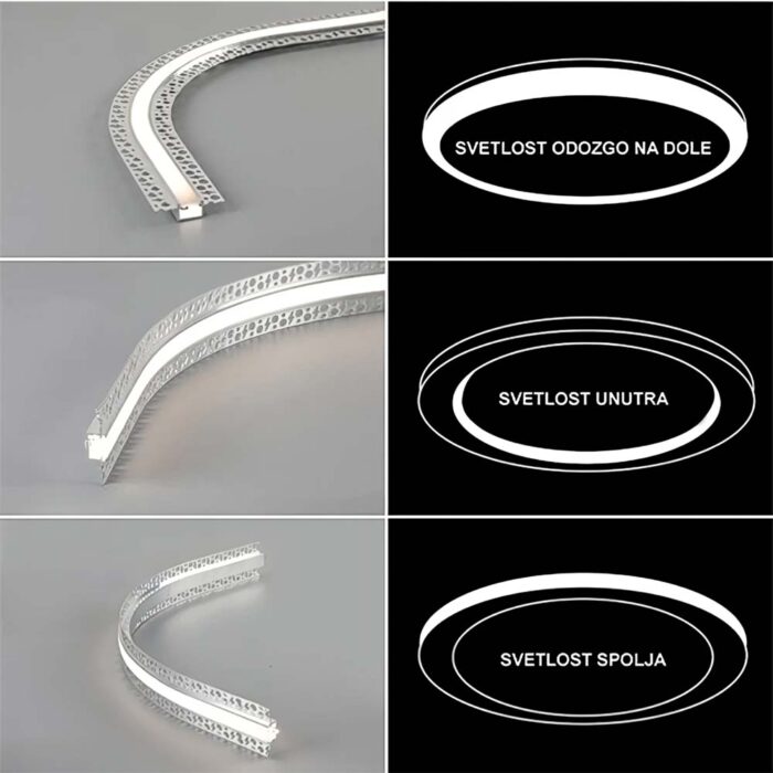 Aluminijumski profil za LED trake sa difuzorom FLEX 16mm – ugradni