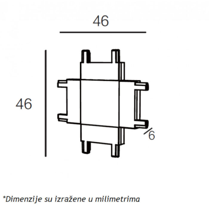 Krst konektor za SLIM Magnetnu šinu crni – Boja crna, dimenzije 6×46 mm.