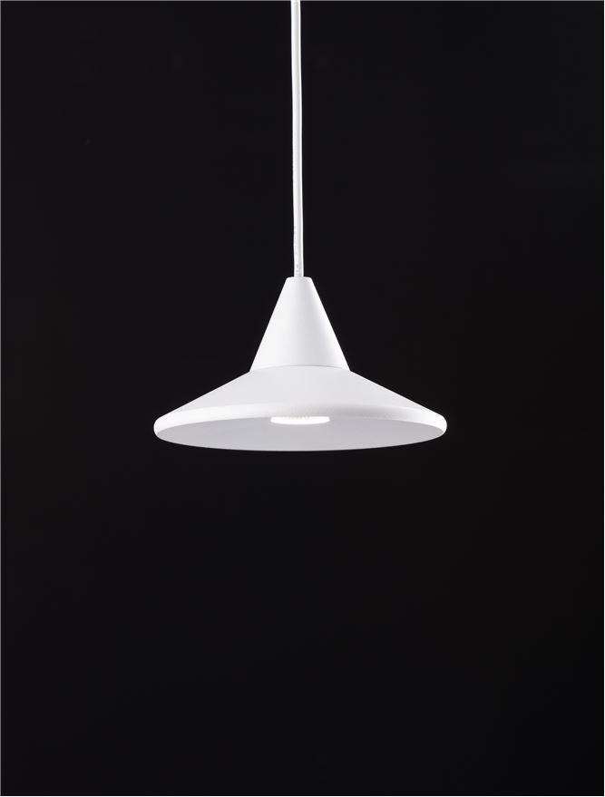 Nova Luce visilica DRO – Kompaktna LED visilica sa integrisanim LED od 6W (355 lm) i Triac dimmerom. Bela aluminijumska konstrukcija. Dimenzije: Ø9,2×150 cm.