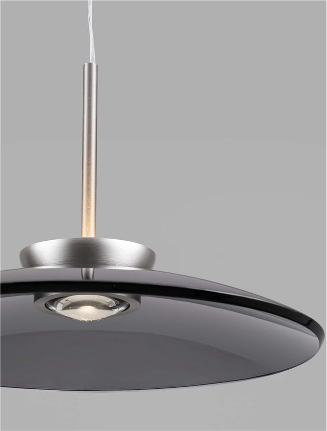 Nova Luce visilica ESTI 9088127 – Elegantna LED visilica od aluminijuma i stakla sa dimovanjem. Toplo svetlo i prečnik od 50 cm u sivim tonovima.