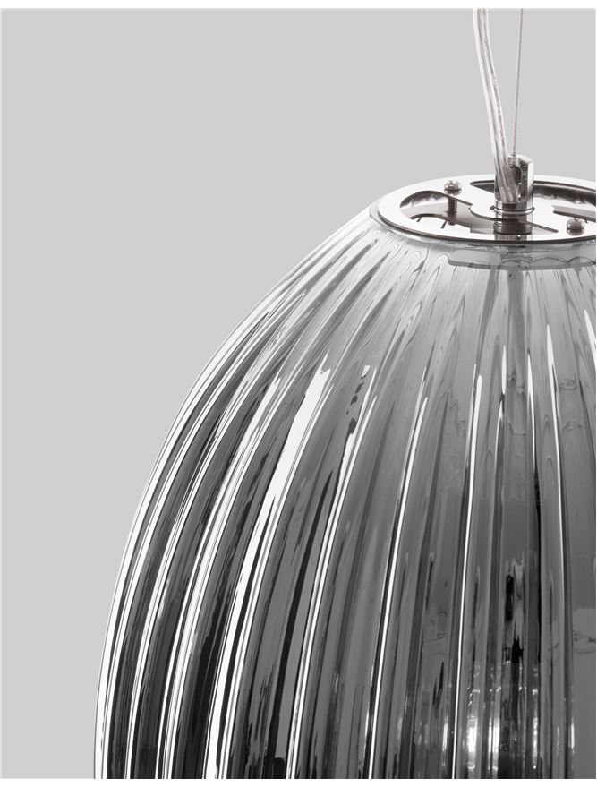 Nova Luce visilica HECTOR 9190031 – Moderna viseća svetiljka sa jednim E27 grlom za kvalitetno osvetljenje. Kućište od metala i stakla u dim sivoj boji, prečnik 30cm. Garancija 3 godine.