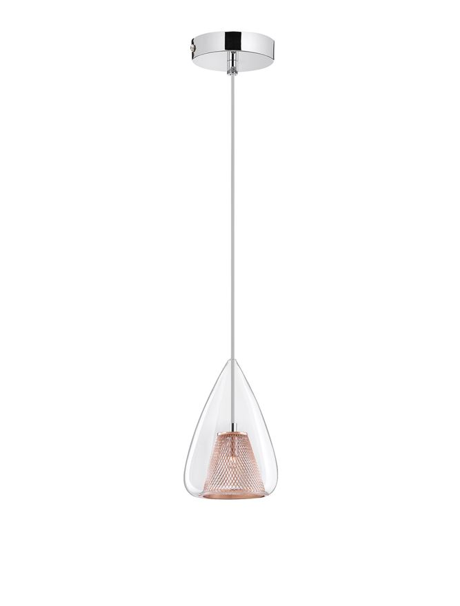Nova Luce visilica HUGO 1600200501 – Elegantna visilica od aluminijuma i stakla. Hrom i roze zlatna boja, G9 grlo. Garancija 3 godine.