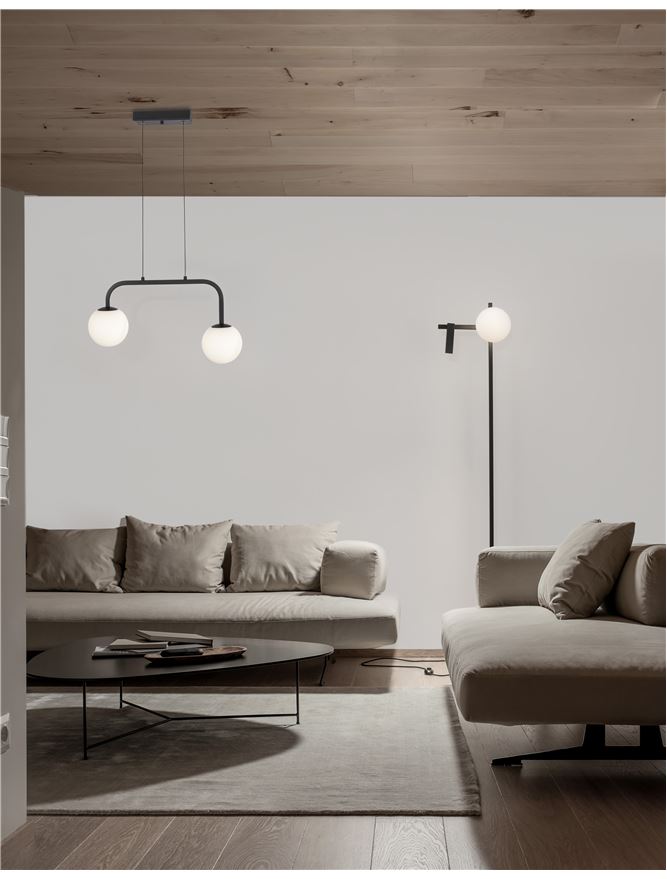 Nova Luce visilica JOLINE 9919602 – Integrisani LED, 1030 lm, 16W, 3200K, aluminijum, pesak crna, staklo, opal bela, 35×12.5×115 cm, IP20, garancija 3 godine.