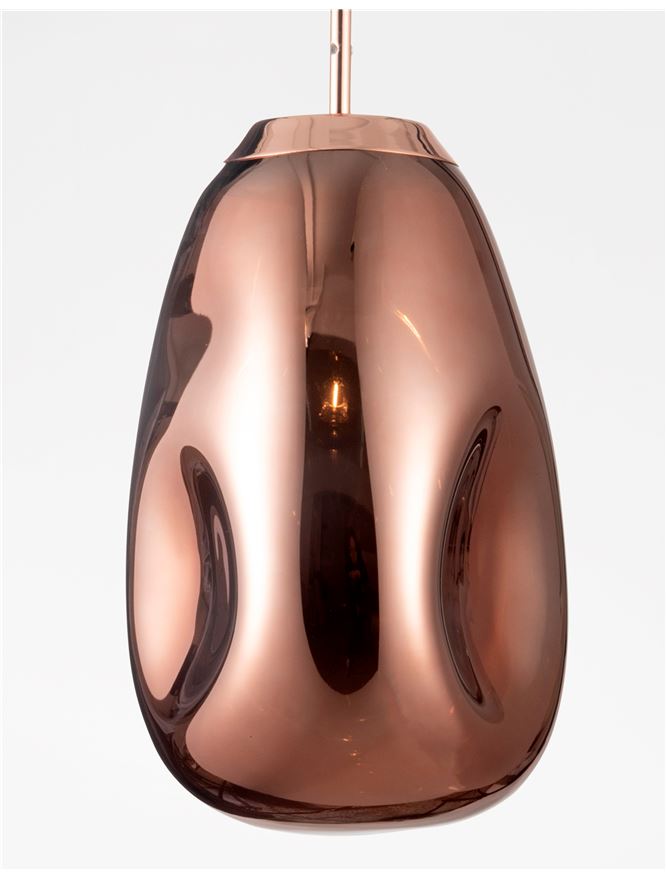 Nova Luce visilica LAVA 9190391 – Elegantna bakarna visilica sa ručno izrađenim staklom. Snaga do 12W, prečnik 22 cm. Garancija 3 godine.