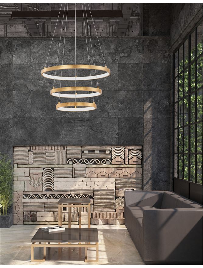 Nova Luce visilica LEON 9501430 – Moderna zlatna LED viseca lampa: napredne funkcije zatamnjivanja, podesiva visina, savremeni dizajn.