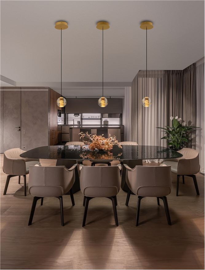 Nova Luce visilica LICIO 9186958 – Kompaktna LED visilica sa integrisanim izvorom od 4W za dekorativno osvetljenje. Kućište od metala i stakla u zlatnoj boji, prečnik 14cm. Garancija 3 godine.