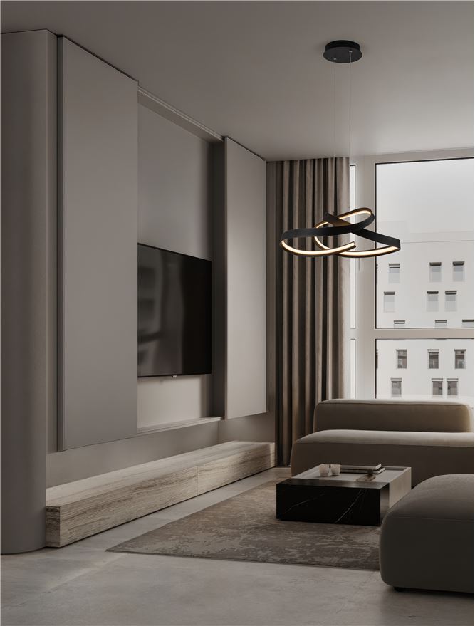 Nova Luce visilica OLIA 9104716 – moderna LED visilica u pesak crnoj boji sa 47W, TRIAC dim funkcijom i izborom toplog do neutralnog svetla za svečane trenutke.