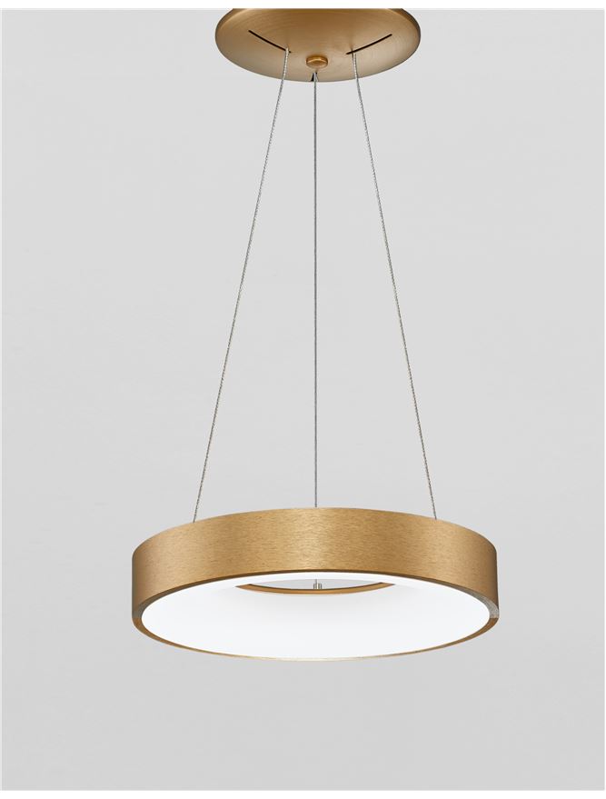 Nova Luce visilica RANDO THIN 9453432 – Integrisani LED, 1950 lm, 30W, 3000K, dimovanje, aluminijum, brušeno zlatna, akril, Ø38×120 cm, IP20, garancija 3 godine.
