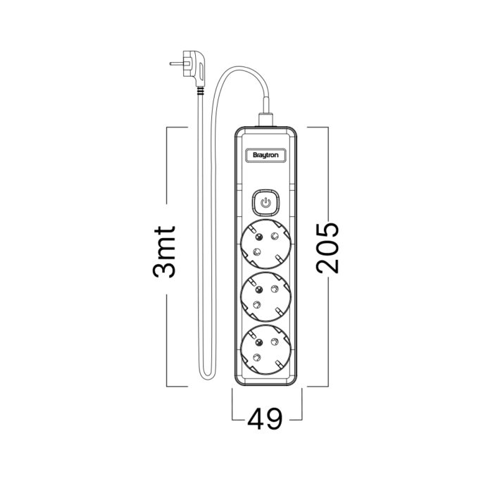 Produžni kabal sa 3 utičnice i prekidačem 5m 3×1,5mm