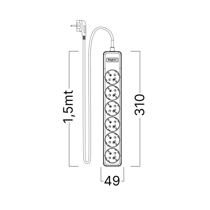 Produžni kabal sa 6 utičnica 1,5m 3×1,5mm