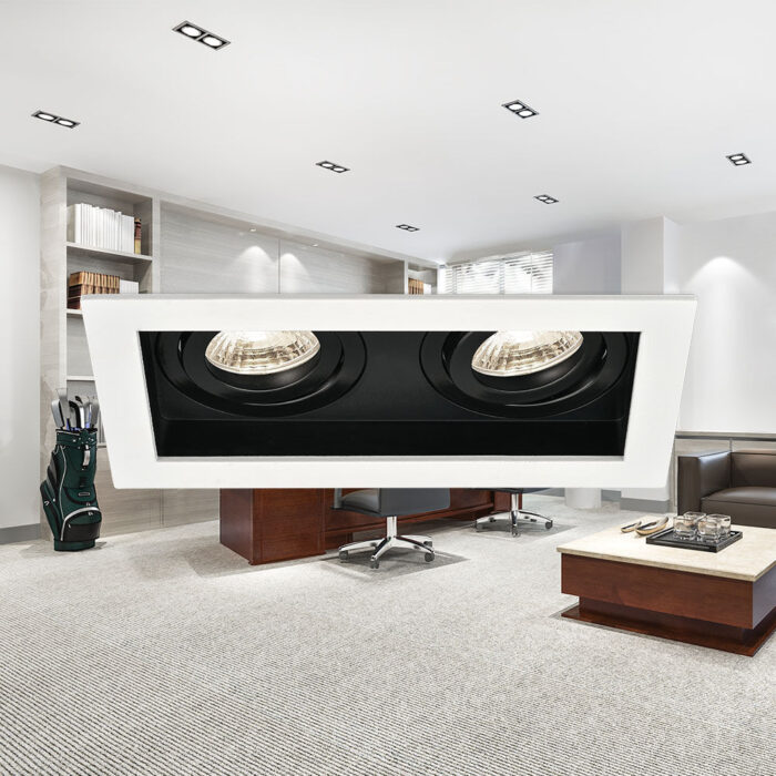 Rozetna BETA 2D kvadrat bela sa prostorom za dve GU10 sijalice. Diskretno i praktično rešenje za osvetljenje hodnika.
